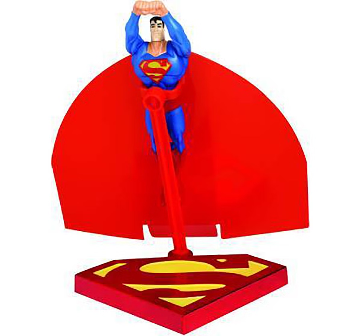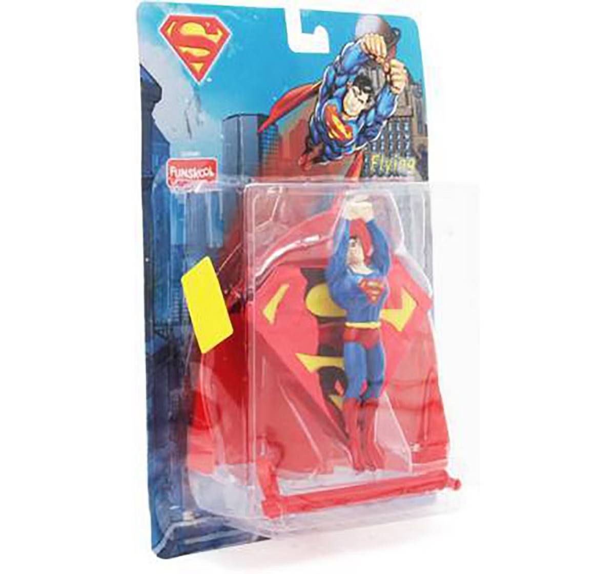 Superman - the epic superhero has mesmerized children and adults for generations owing to his extraordinary strength, prowess and chivalry, inspiring little boys all over the world. This collectible toy exemplifies Supermans flair for flight with an aerodynamic cape which renders swank to it. Ideal for both boys and girls, this Superman midget is suitable for children 4 years and above. Supermans characteristics are supported by the quixotic S-shield stand which holds the figurine at its waist. He flaunts his signature pose with his wrists closed, high up in the air, ready to assume aviation. The flaming vermillion cape assists him in the same; it stands proudly upright and aligns itself symmetrically to Supermans back. Beholding this heroic character everyday shall instill the feeling of bravery and heroism in your child. He shall idealize this larger than life figure and believe in the phrase skys the limit.