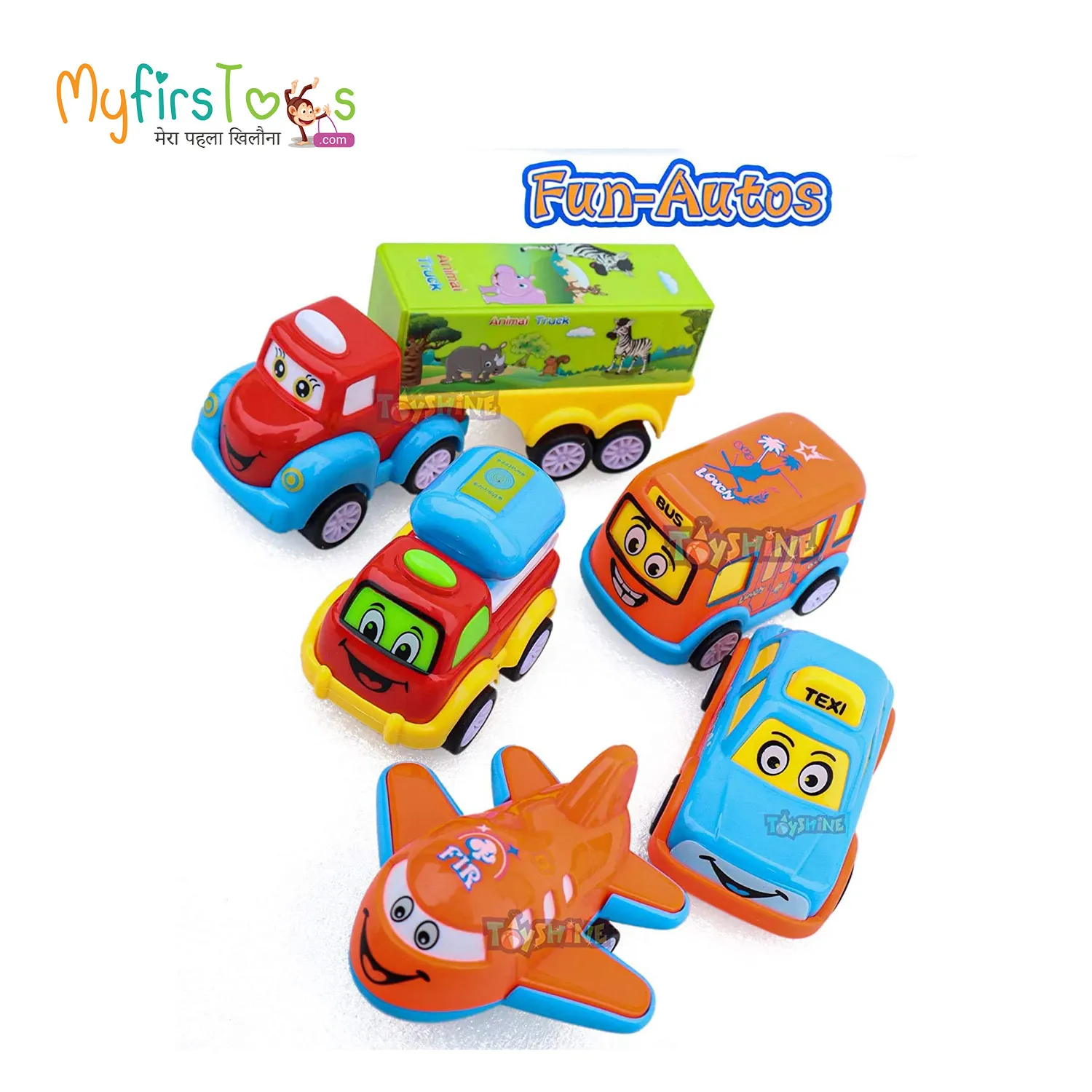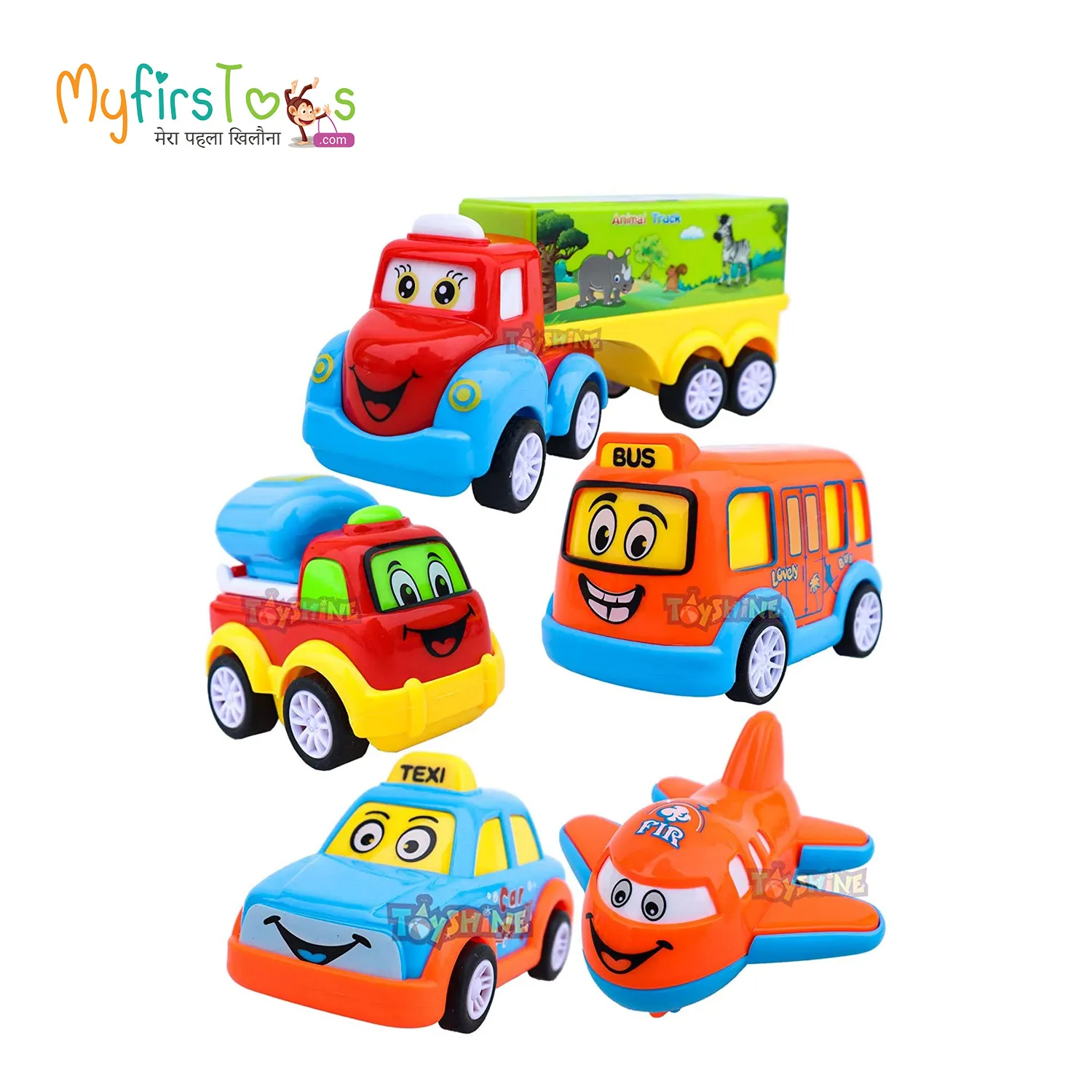 • √ TRUCK TOYS (Set of 5): Best Choice for baby age 1 2 3! This colorful push and go car toy playset is set of 6 vehicles: 1 Tractor Trailer, 1 Aeroplane, 1 Bus, 1 Taxi Car, 1 Milk Tanker