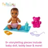 • Inspire nurturing play and realistic storytelling with accessories including a smartphone, rainbow-print baby blanket, rattle, bottle and teddy bear.