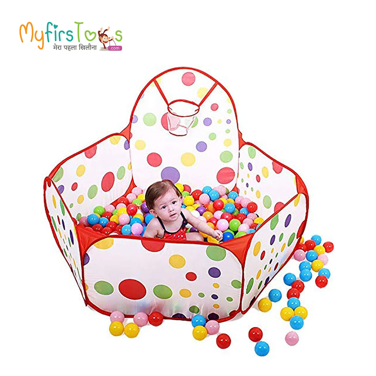 • Included Items: 1 Piece Hexagonal shape with alternate mesh sides with a basketball slot, 100 Pieces Soft plastic balls