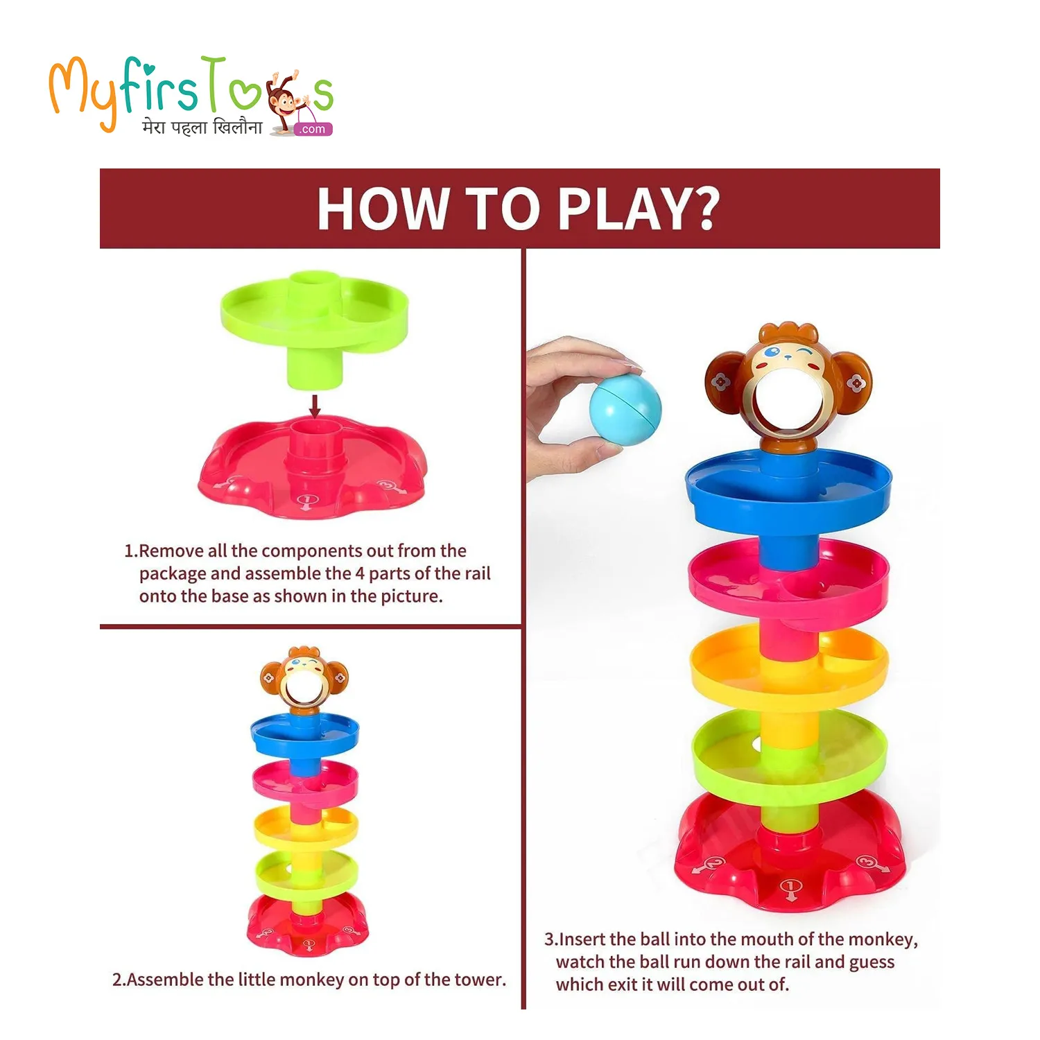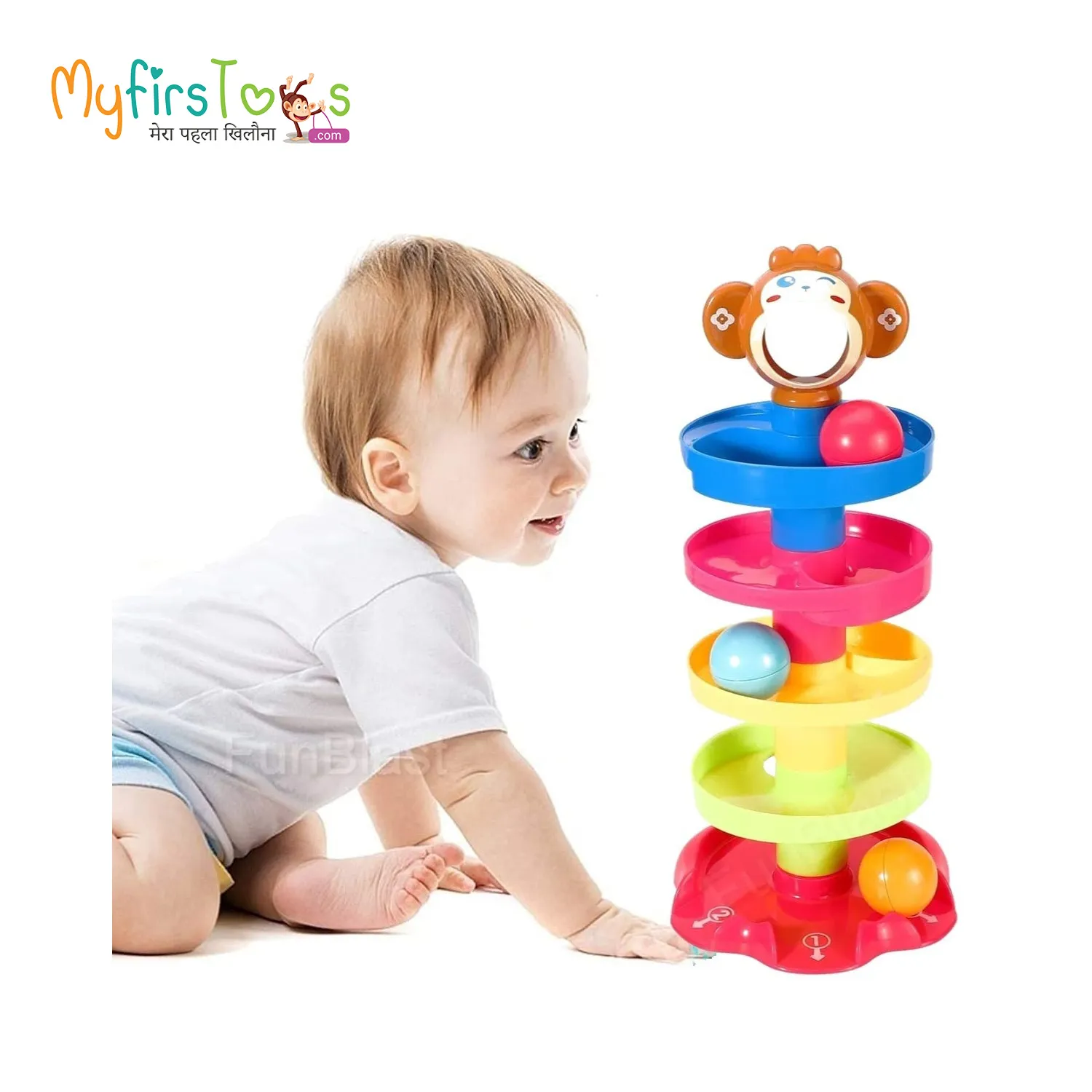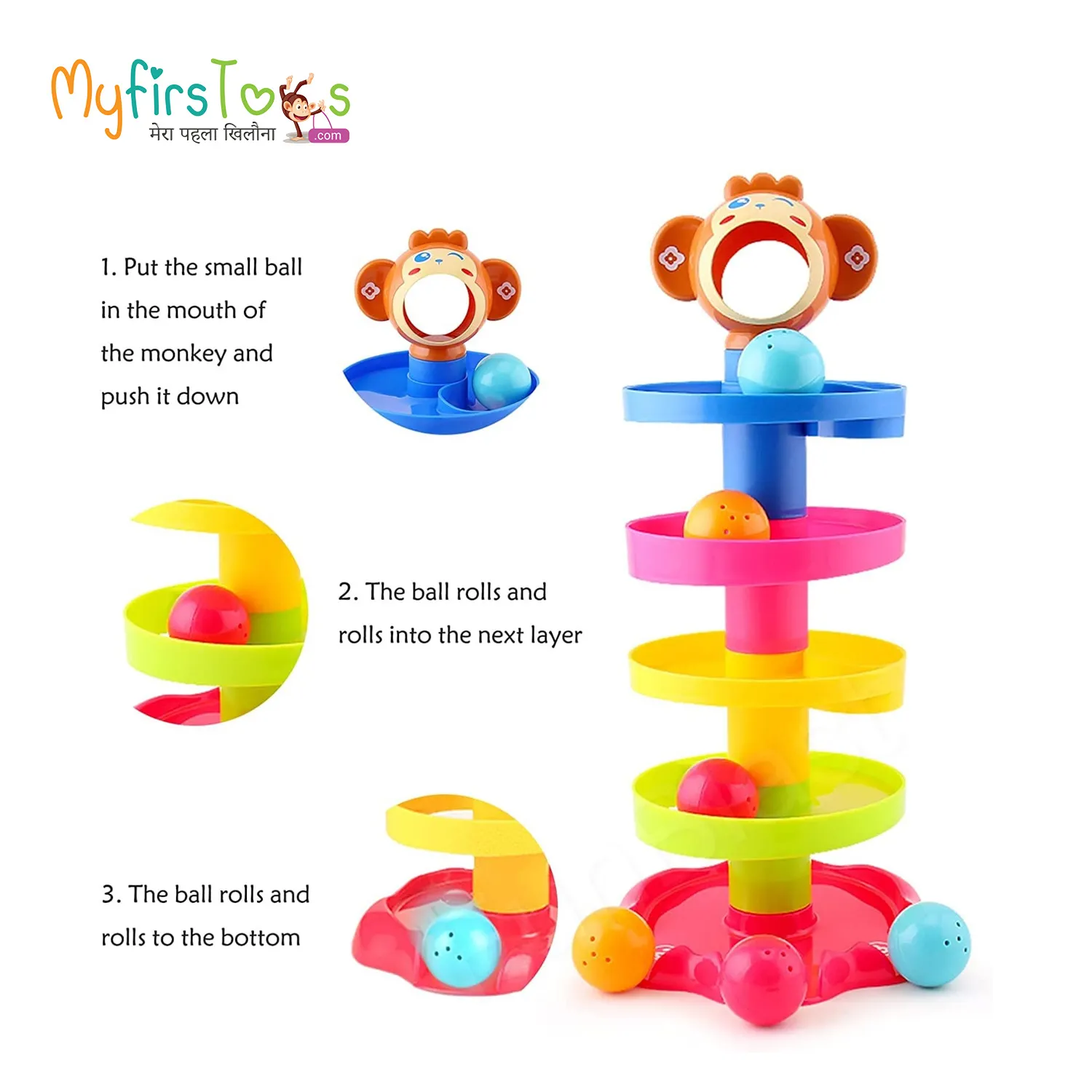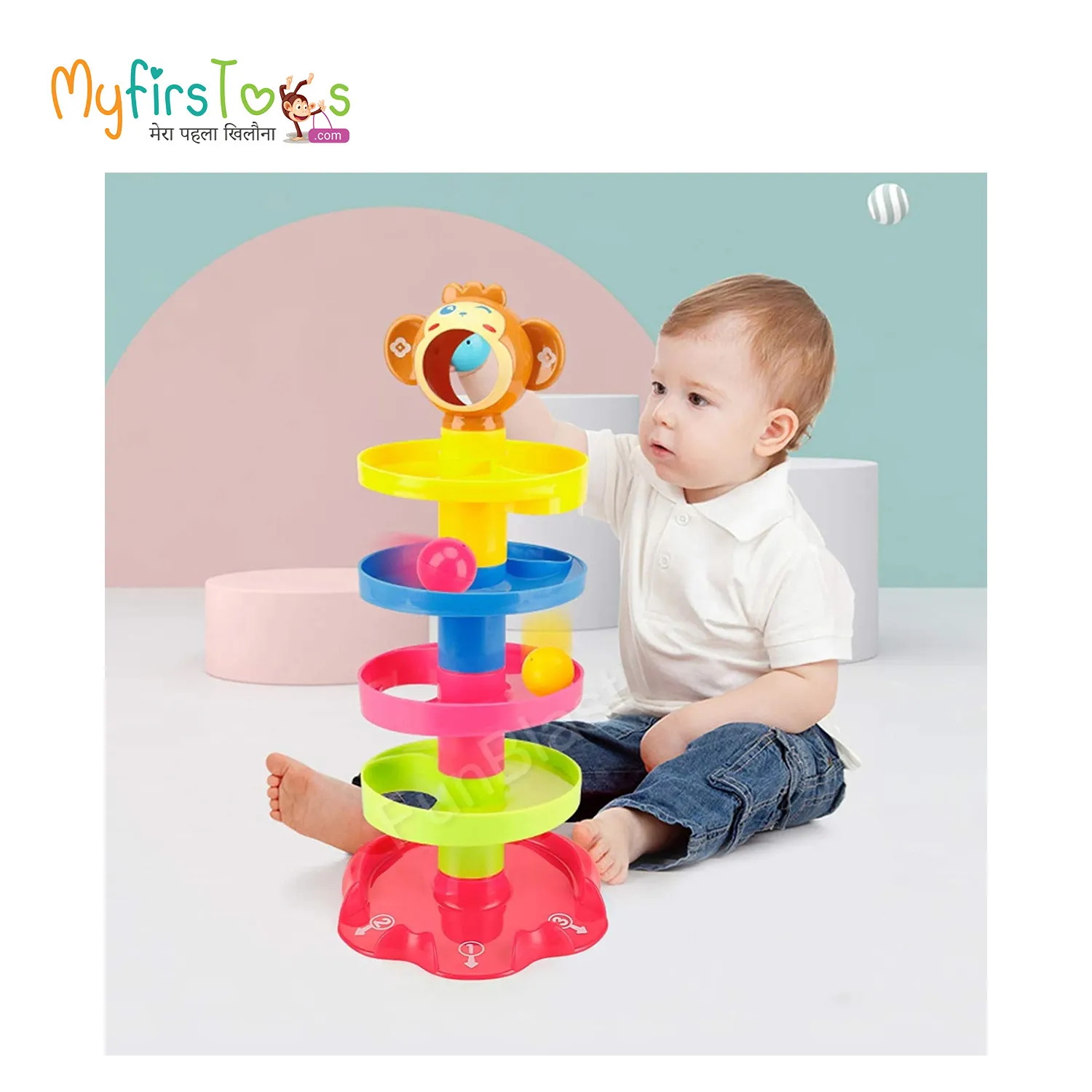 Roll Swirling Tower for Baby & Toddler Educational Toys | Stack, Drop and Go Ball Ramp Toy Set Includes 3 Spinning Activity Balls - Multicolor