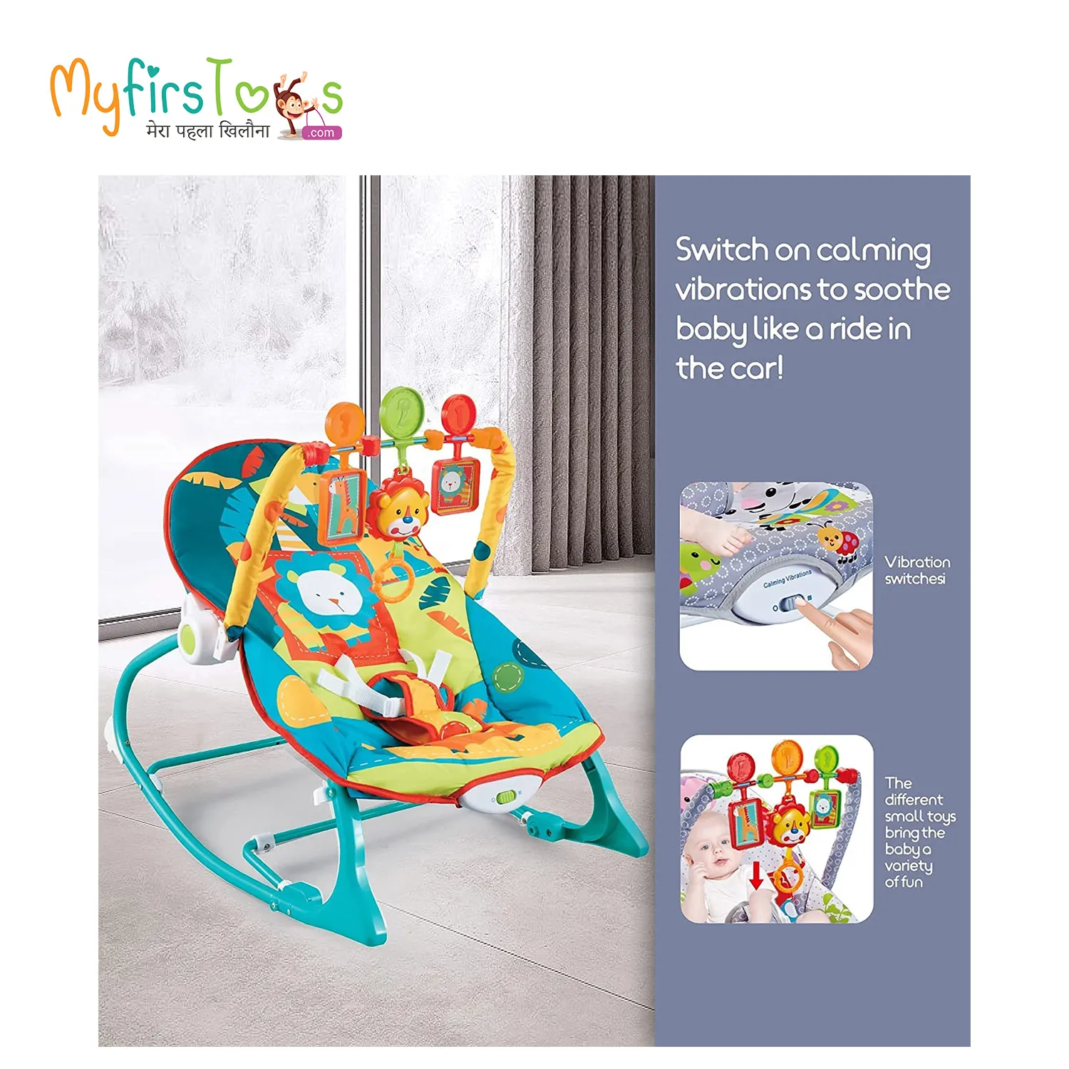 • Security & Happiness: Baby rocker has an adjustable 3-point harness helps keep infants secure. A comfy seat and calming vibrations help soothe babies.