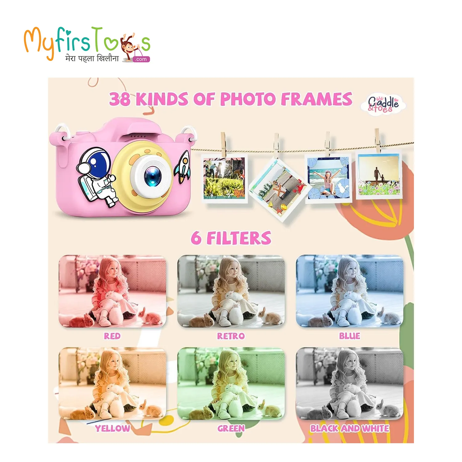 • ????【850mAh Battery】 Built-in 850mAh large-capacity battery that works for 2-4 hours, charging for 1-2 hours, the automatic shutdown function can be selected in 1 minute, 3 minutes, or 5 minutes mode. micro SD card included, can store more than 2300 photos, keep on recording happy moments of the childhood of your children.