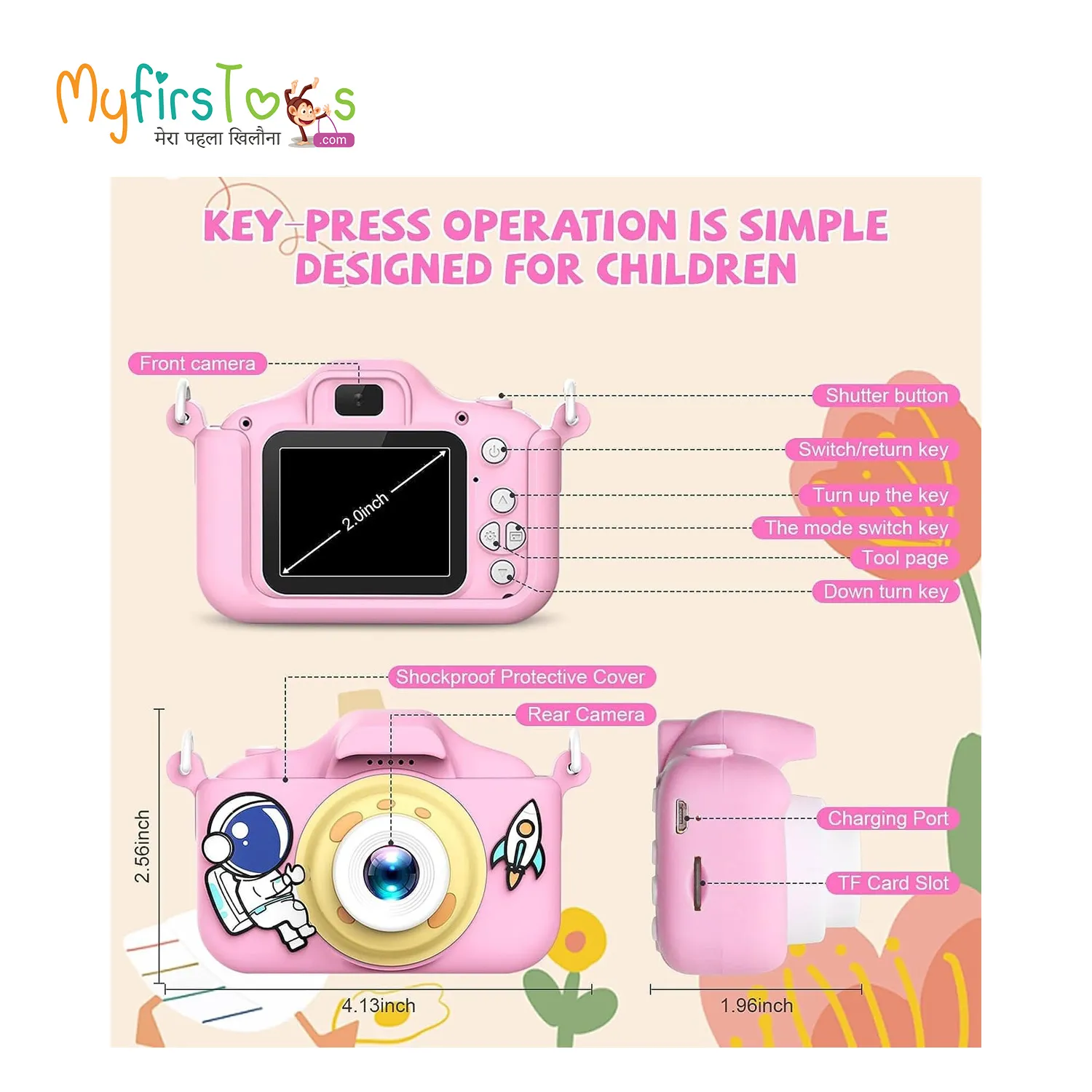 • ????【Great Gift for Kids】 This Kids Digital Camera is extremely cute, small and light weight, Perfect size for little hands. Easy to carry and operate. Compared with other kids camera, this kids camera has a 2 inches screen and make it easy for your kids to take pictures and videos.Come with microSD card(already placed in the camera),can play directly when get it.It is a good birthday / Christmas / holiday gift to Children.