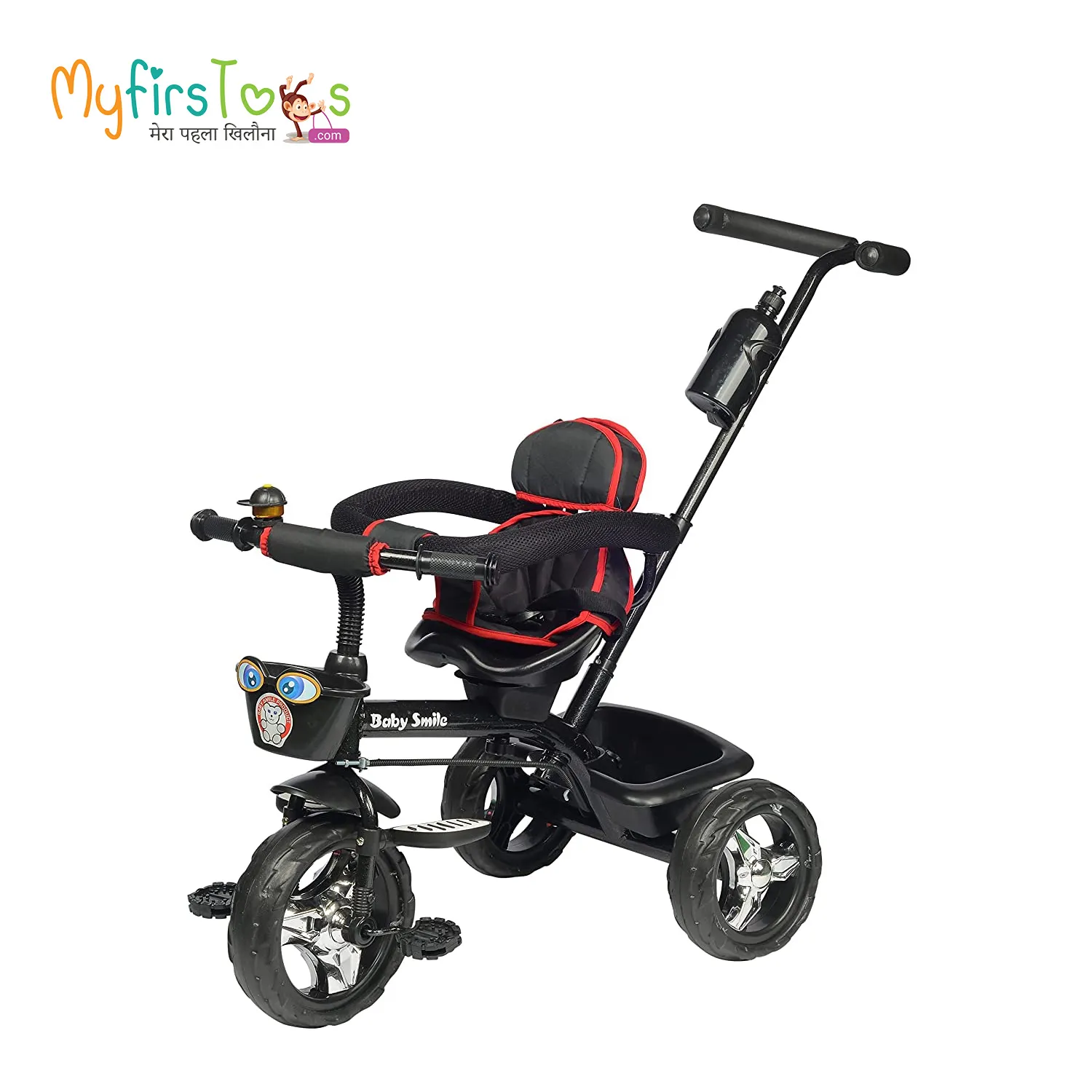 Small Kids Cycle Baby Tricycle for Kids Cycle Gear with Parental Push Handle, Toys for Kids Rubber Wheels Trikes for 1.5 Years to 5 Years Kids, Black