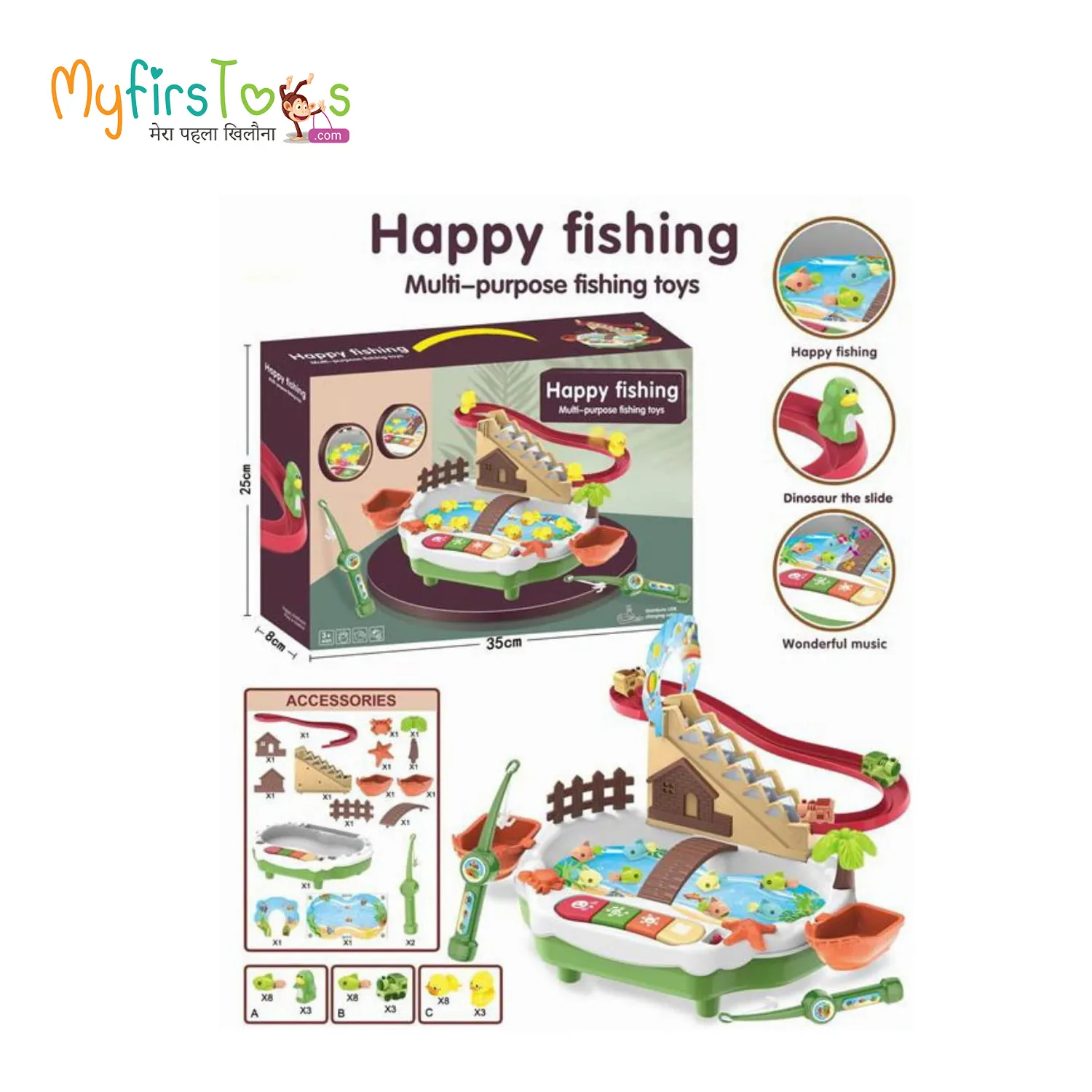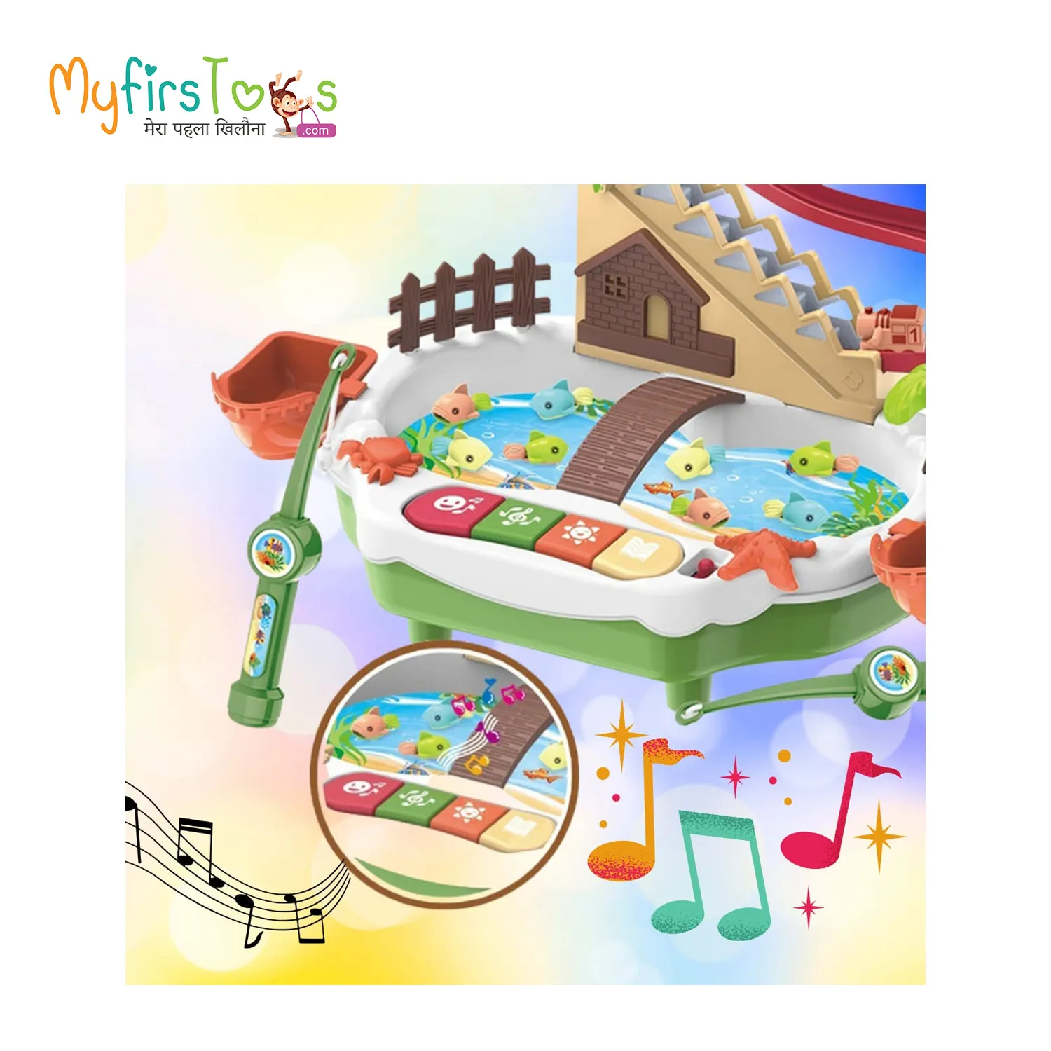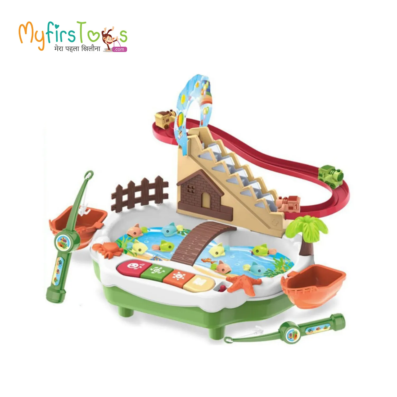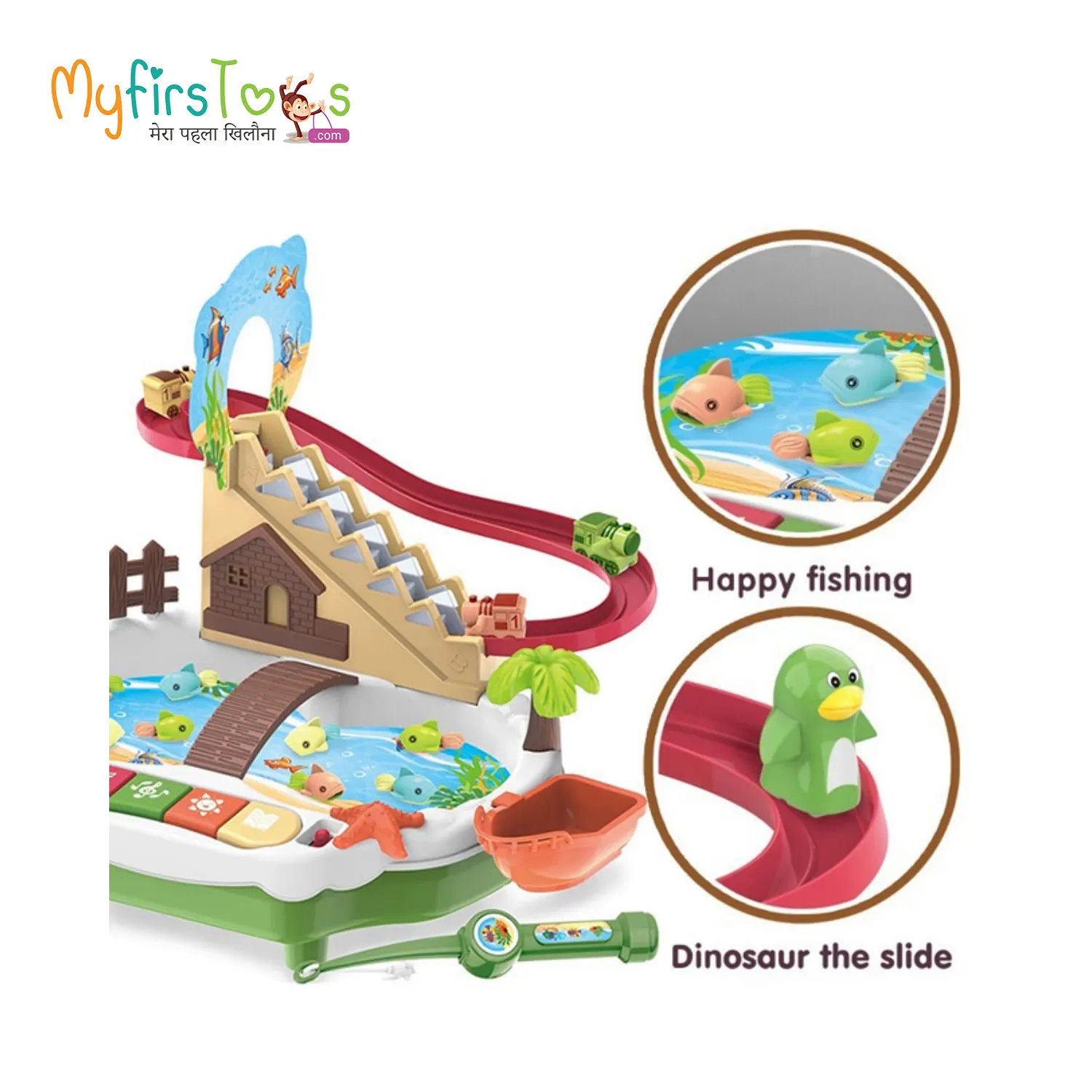 Fishing Game Toys with Slideway, Electronic Toy Fishing Set with Magnetic Pond, Learning Educational Toys with Music Story for Kids Toddlers Gift for Baby