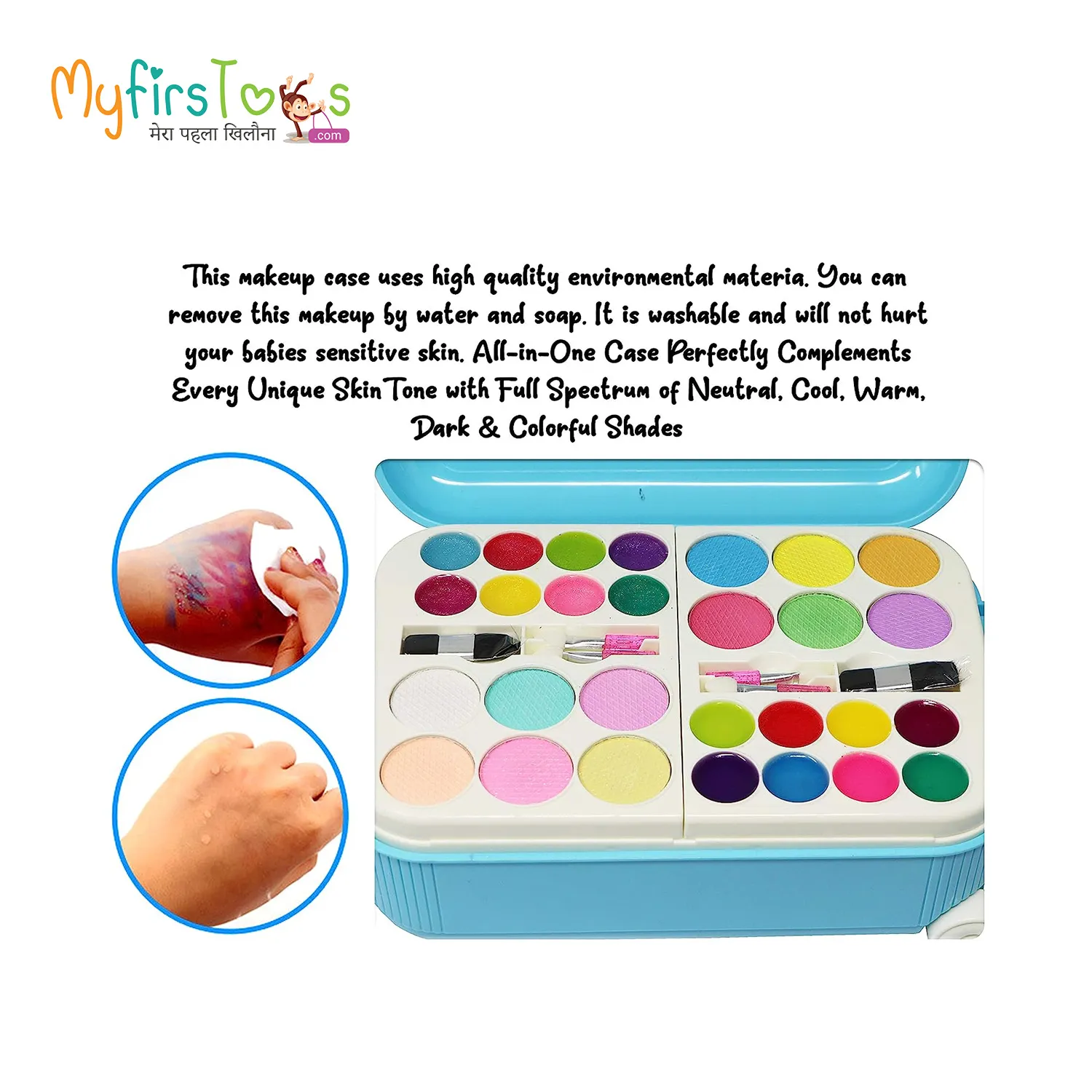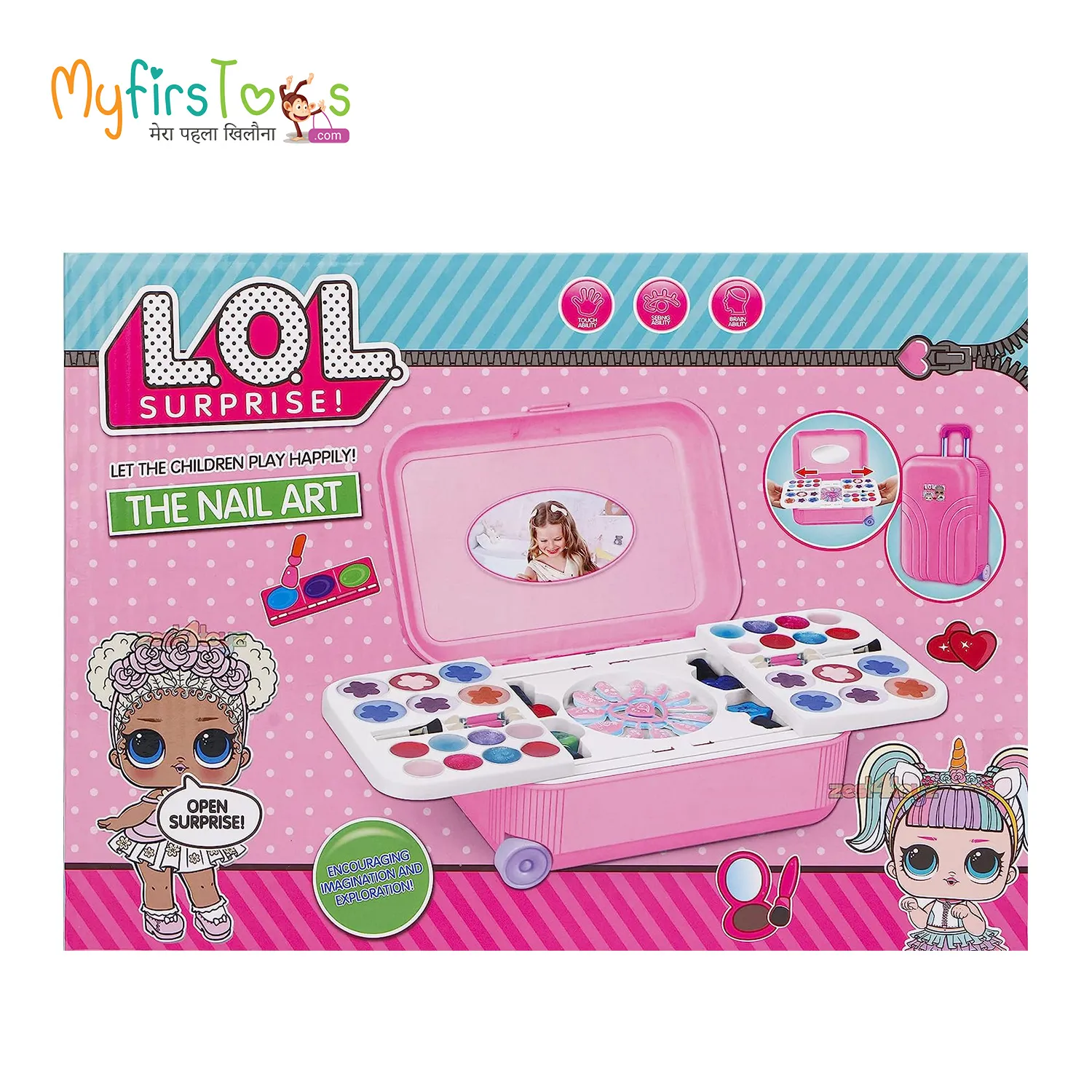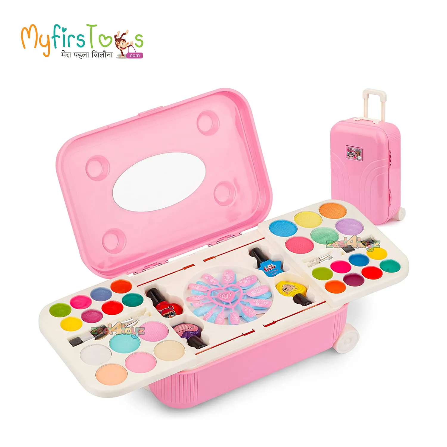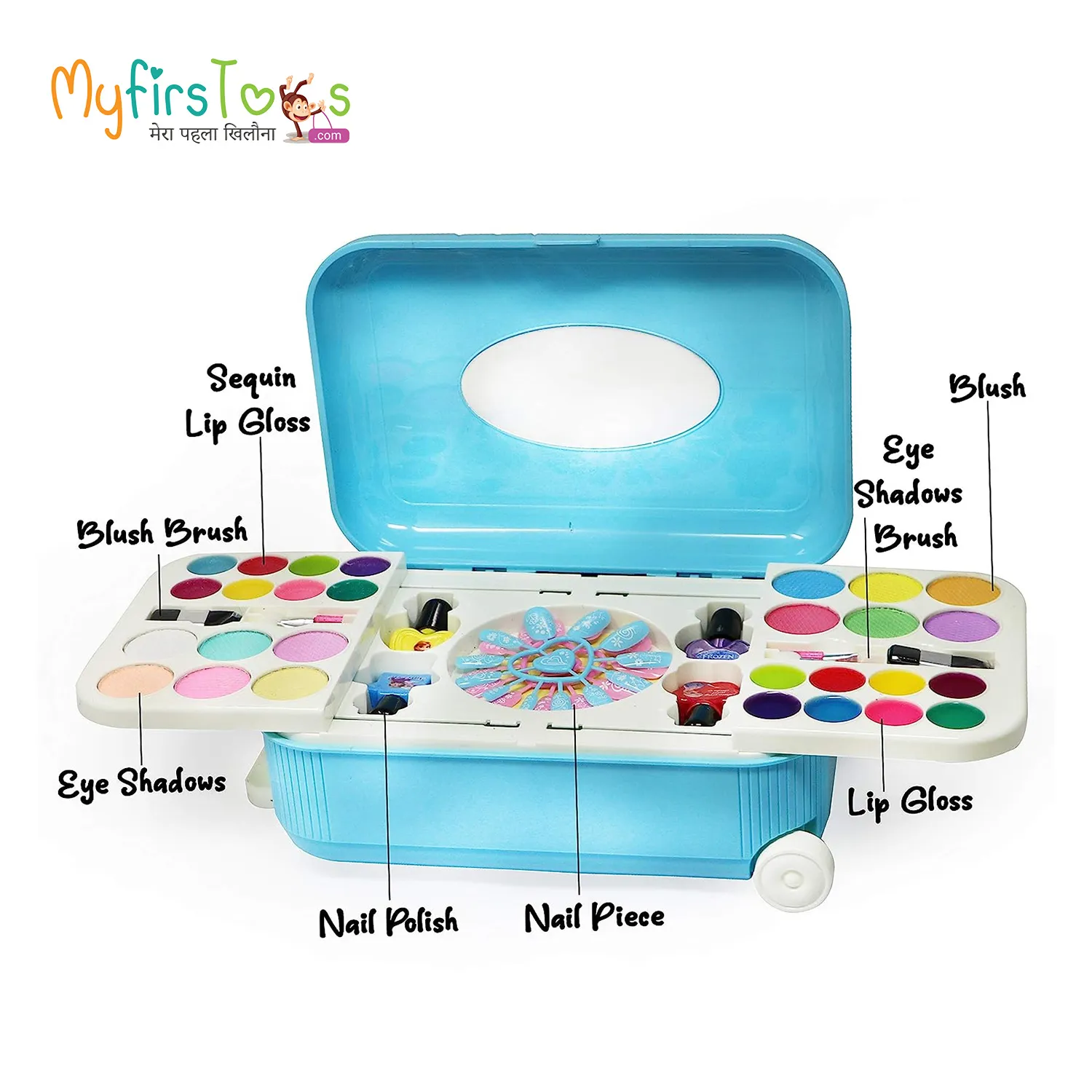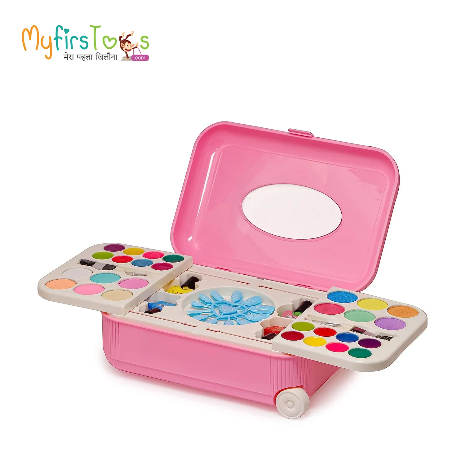 2 in 1 Cosmetic Makeup Palette and Nail Art Kit for Kids with Portable Trolly Bag | Pretend Play Toy for Girls -Plastic, Multicolor - MyFirsToys
