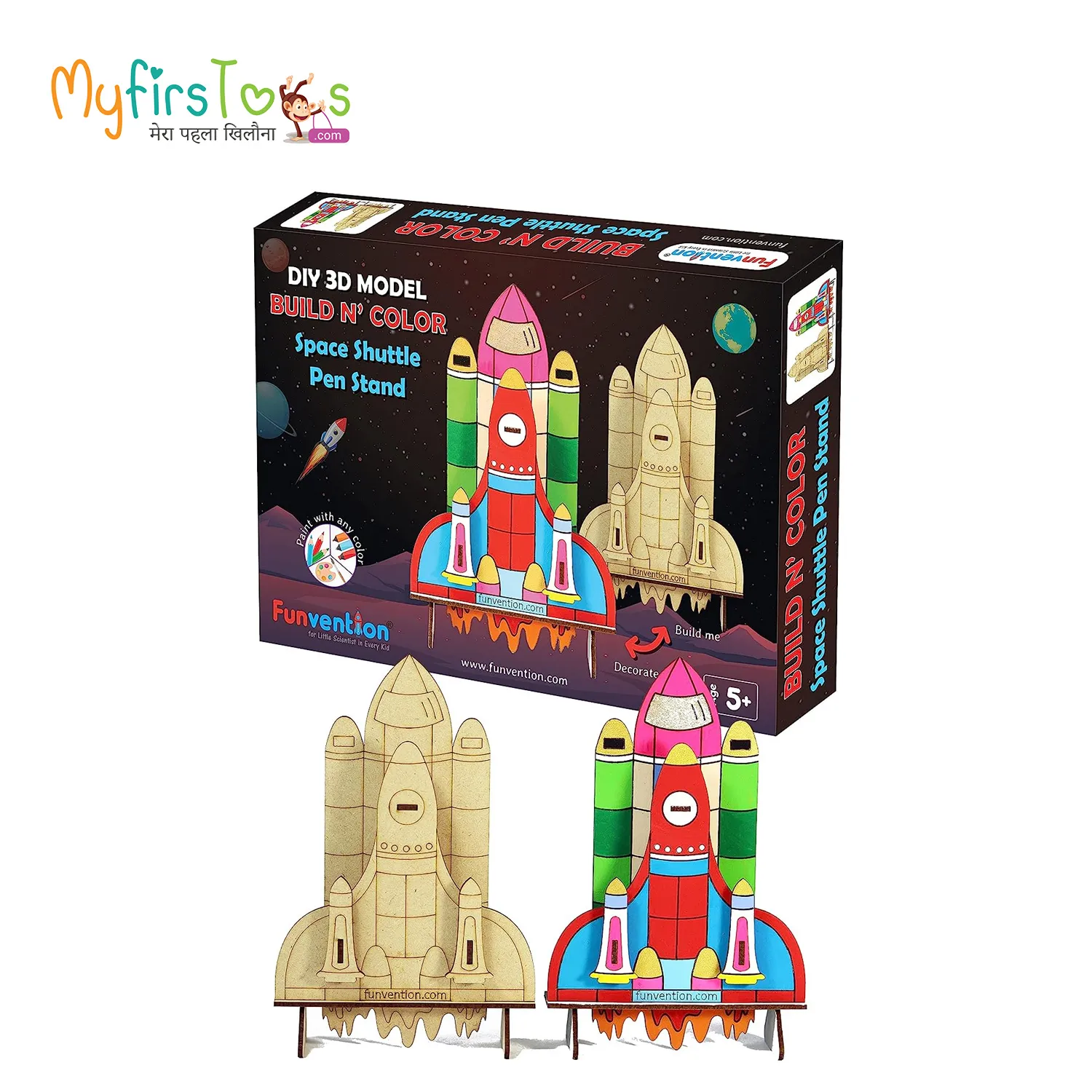 Space Shuttle - 3D Coloring Model - DIY Desk Organizer Pen Stand - STEM Leanring 3D Puzzle Toy - Art, Coloring and Painting Kit for Kids - Birthday Return Gift,3D Mechanical DIY Toy