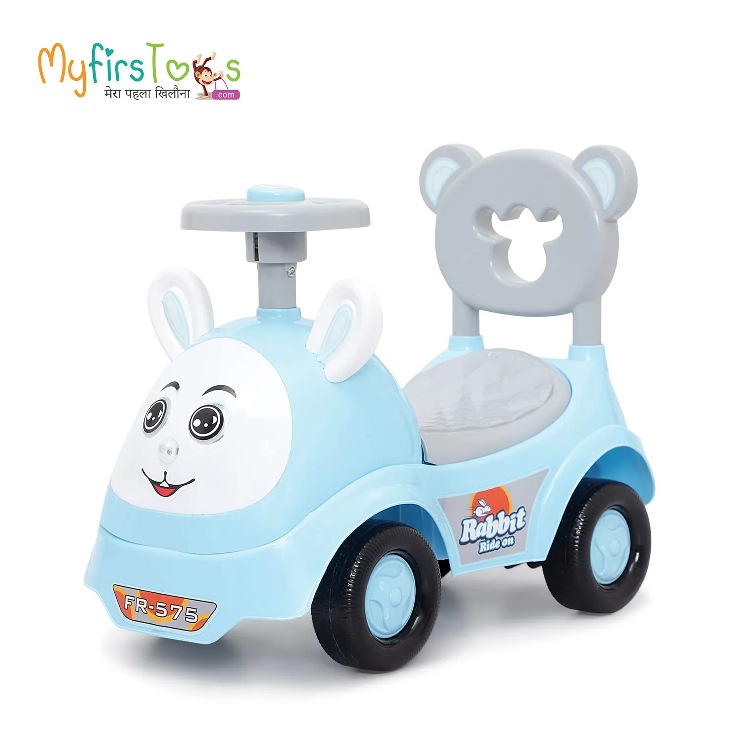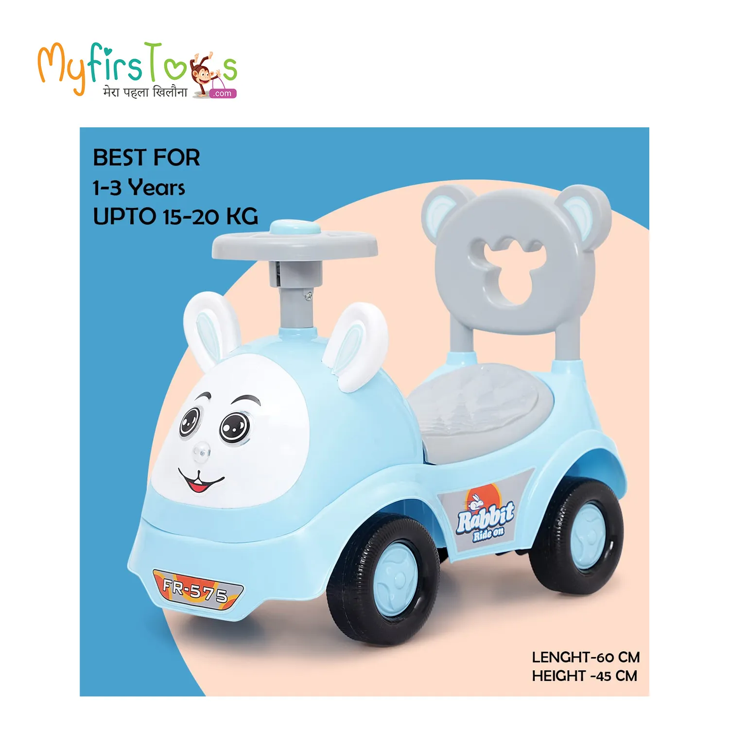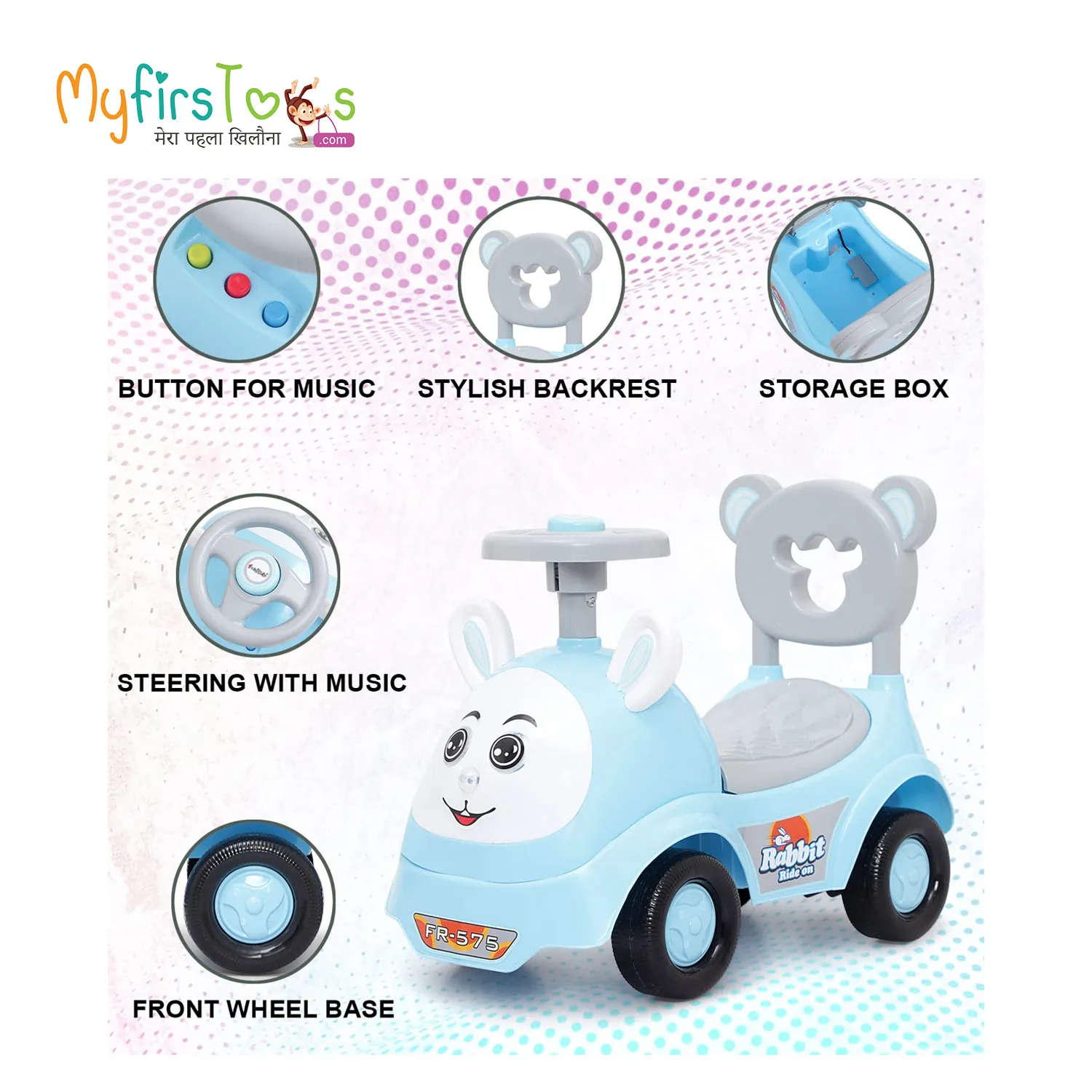 Kids Push Car Rabbit Toy Car Backrest and Under Seat Storage Utility Box with Music Horn for Baby (Age 1 to 3 Years, Blue)