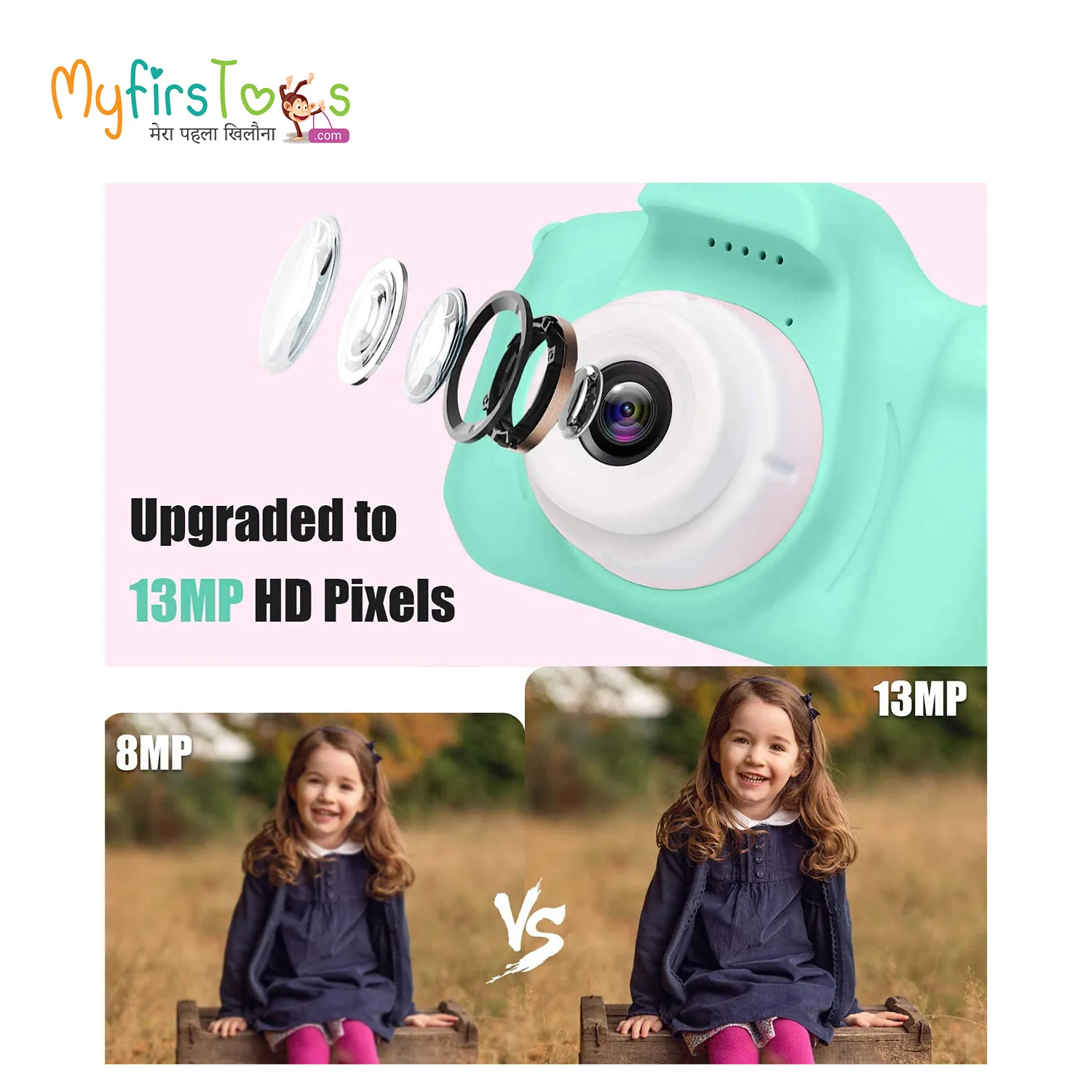 • 【2022 Upgraded Kids Camera】Equipped with 2 Inch HD IPS screen,????13MP pixels and ????1080P Video, which greatly improved the definition of photos.Upgraded ????1000mah battery capacity provides longer usage. And automatic shut-off better preserves battery life if no operation. With SD Card (included), you don't need to worry about the lack of storage space too. Best camera toys for boy girl age 3 4 5 6 7 8 9 10.