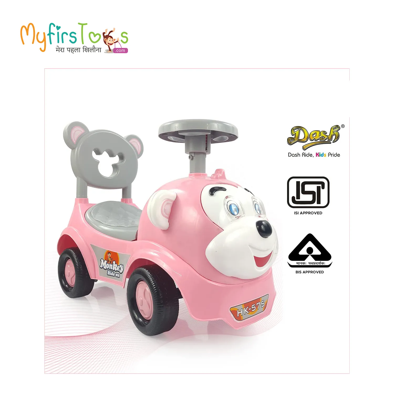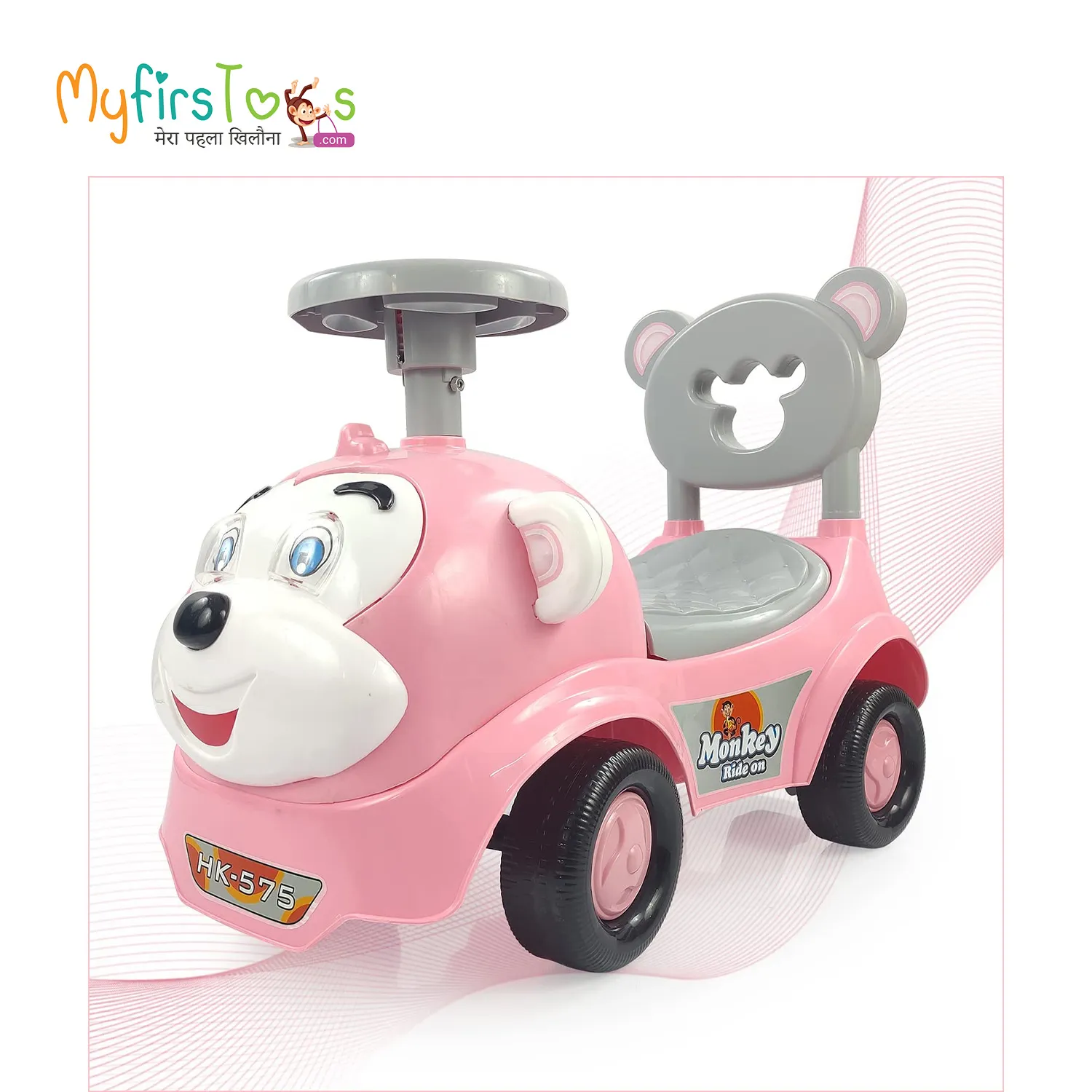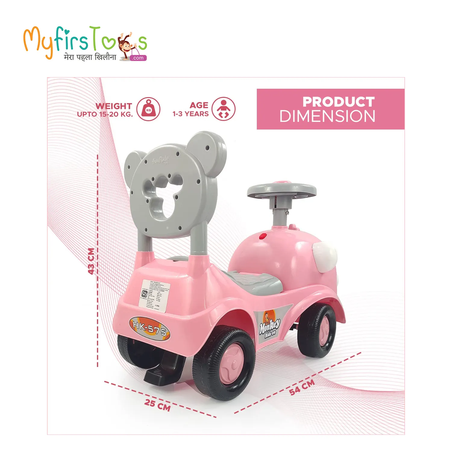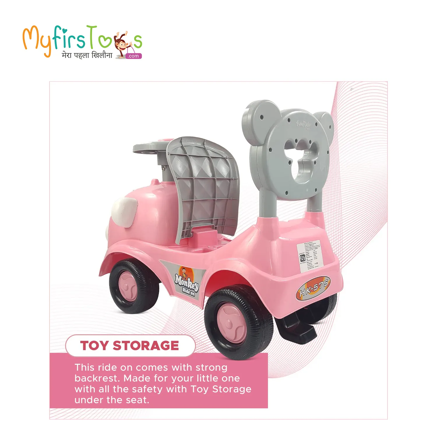 Monkey Ride On for Kids, Baby Car, Ride On for Kids 2 Years+, Push Car for Baby with Backrest and Under Seat Storage Utility Box for Toys (Capacity 20kg | Pink)