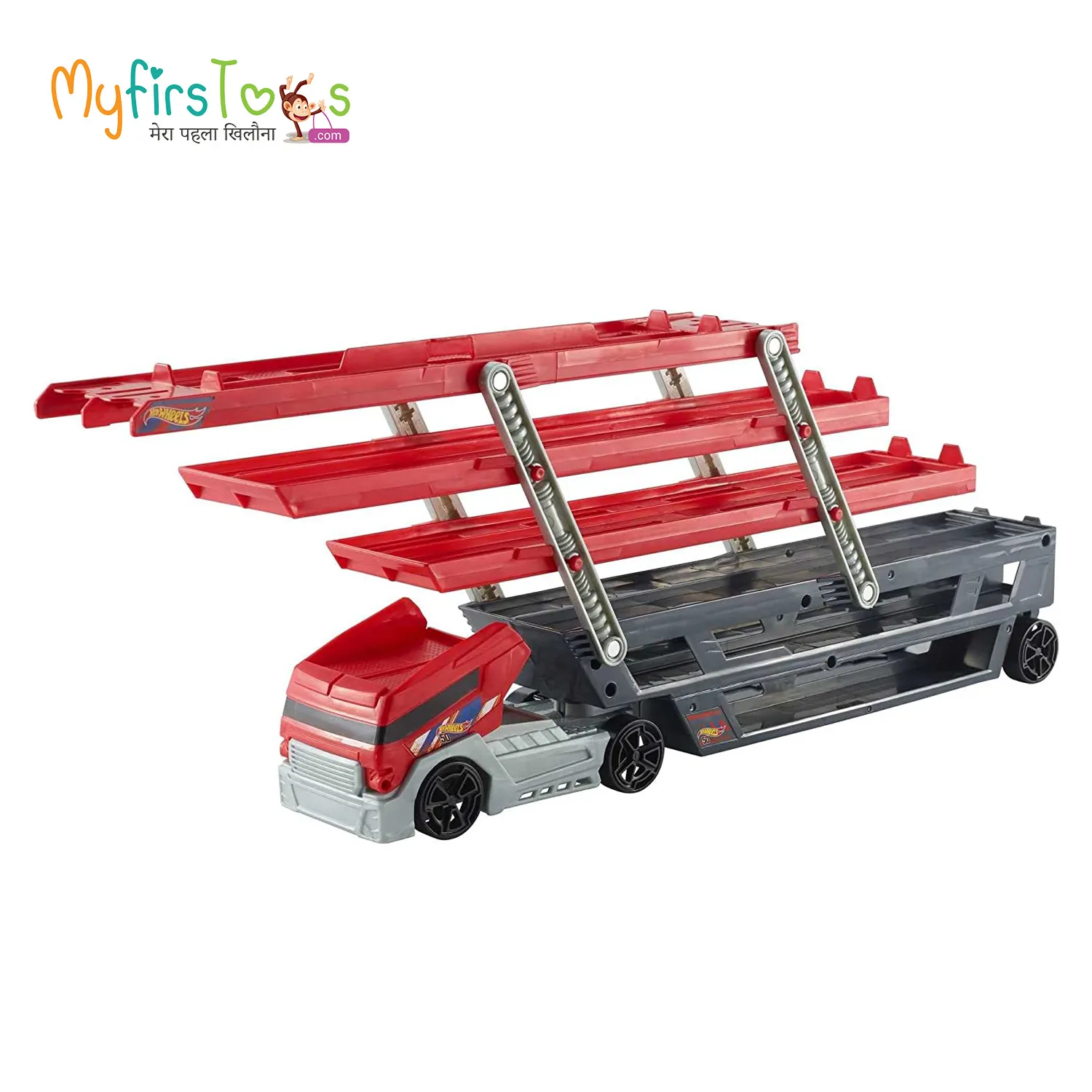 • Product 2: The massive Mega Hauler can carry more than 50 cars in its six expandable Levels, load your favourite cars, lift, and go!